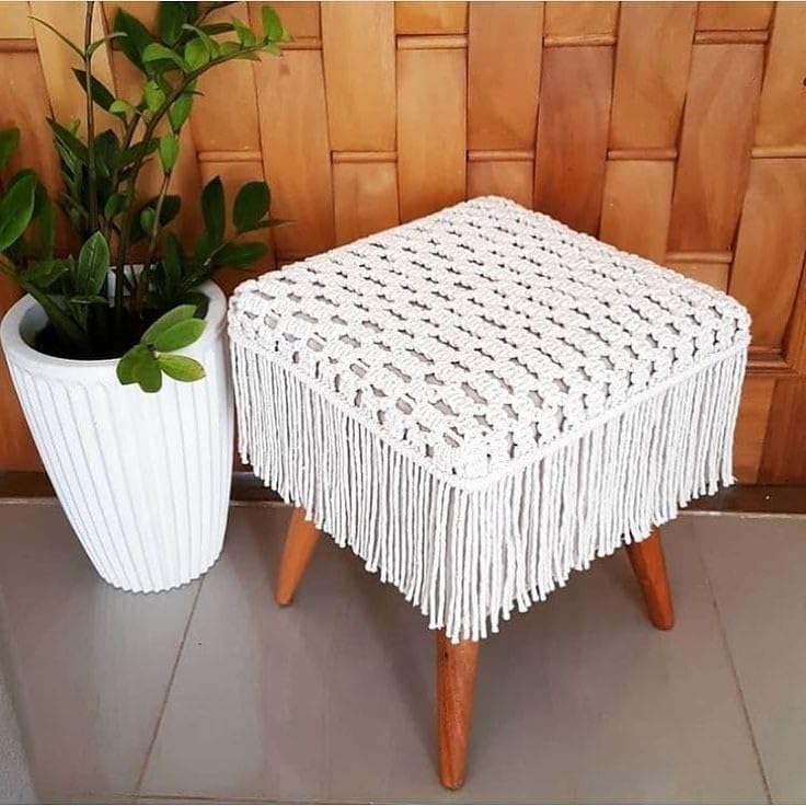 HAYAH LABORATORIES - MacrameStore- Macrame Pouf with Beech Wood Legs 45×50 cm - باف شغل مكرمية رجول خشب زان