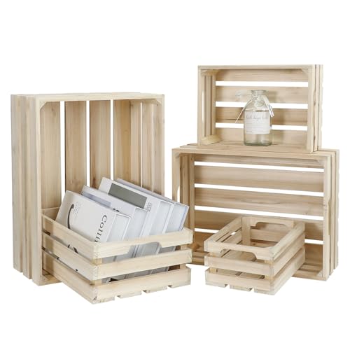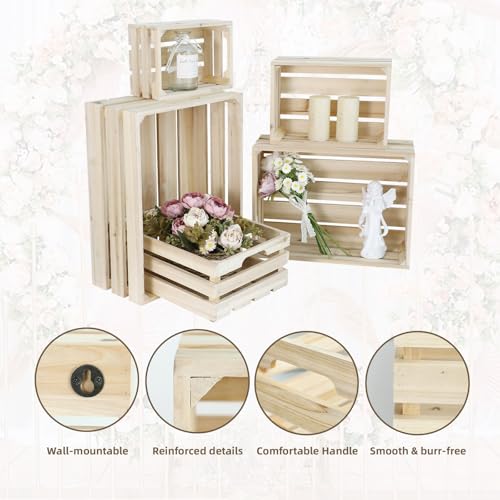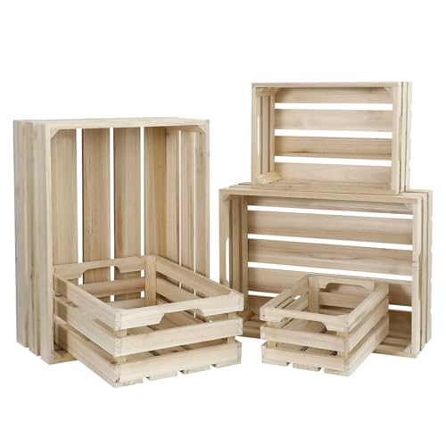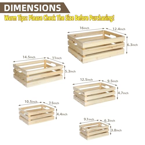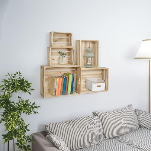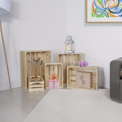 MACVAD - مجموعة صناديق خشبية لبيت المزرعة من 5 قطع من ام اي سي في اي دي - أقفاص خشبية ريفية للعرض والتخزين، أقفاص ديكور كبيرة من الخشب الطبيعي، أقفاص تفاح للمزرعة، أقفاص مطلية للديكور
