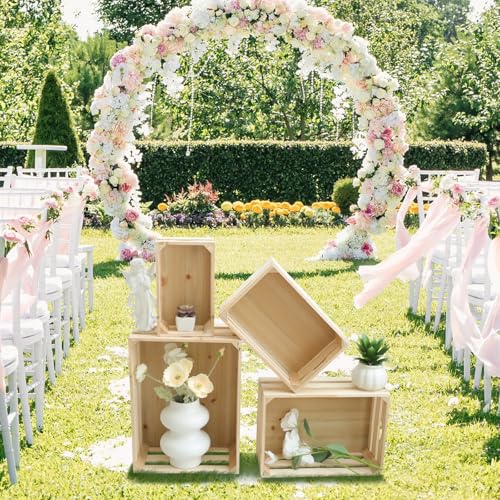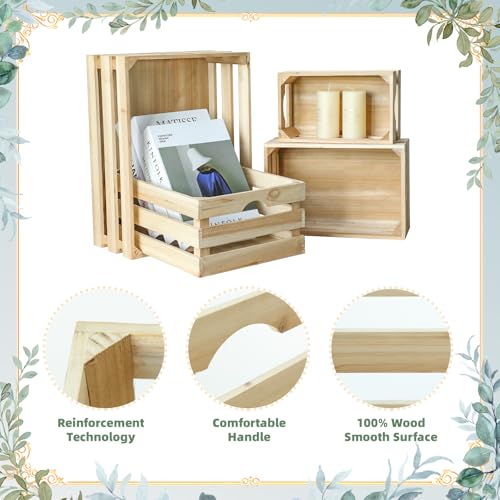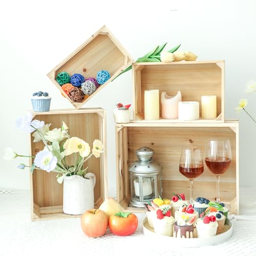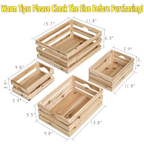 MACVAD - ام اي سي في دي مجموعة من 4 اقفاص خشبية كبيرة غير مكتملة صناديق تخزين مزخرفة للعرض سلة منظمة خشب الصنوبر الريفي للمطبخ والحمام