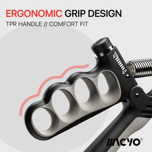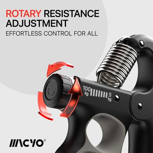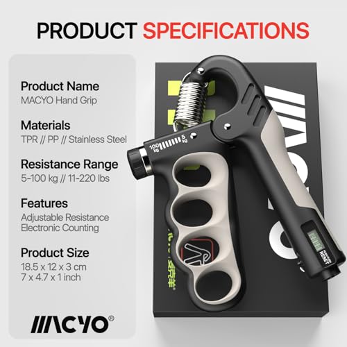 MACYO - أداة تمارين تقوية اليد، مقوي قبضة اليد والساعد مع مقاومة قابلة للتعديل من 5 حتى 100 كيلوجرام، بتصميم مريح مع عداد أوتوماتيك للموسيقيين والرياضيين وللتعافي من الإصابات من ماسيو