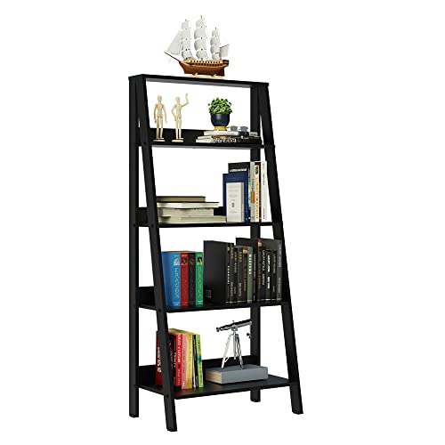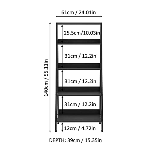 Madesa - MADESA 5-Tier Ladder Shelf with Storage Space, Free Standing Bookshelf, Wood, 61 x 140 x 39 Cm – Black