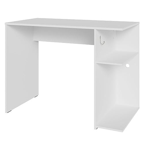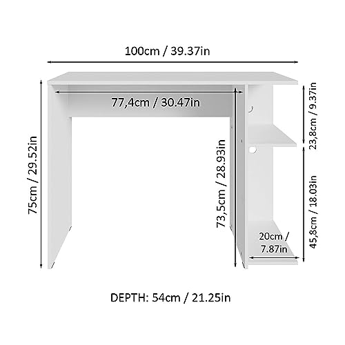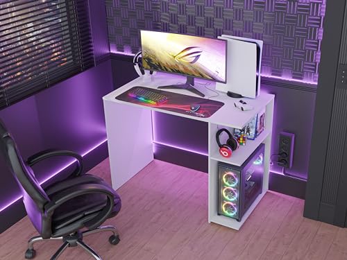 Madesa - Madesa Compact Gaming Computer Desk with 2 Shelves, Cable Management and Large Monitor Stand, Wood, 21" D x 39" W x 30" H - White