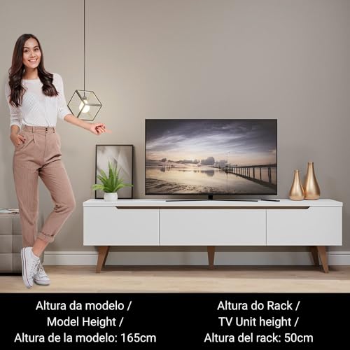 Madesa - حامل تلفزيون ريمز حتى 75 بوصة من ماديسا، أبيض، ميلامين