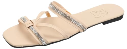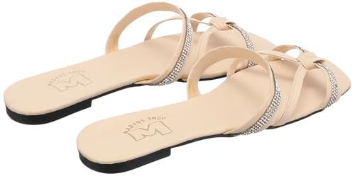 MADYOS - Flat Slippers,Contrast Sole Open-Toe Slides For Women,Synthetic fibers,BEIGE, 40 EU