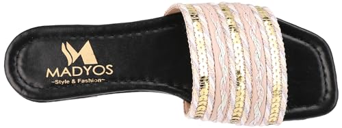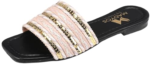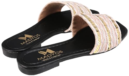 MADYOS - Flat Slippers,Contrast Sole Open-Toe Slides For Women,Synthetic fibers,BEIGE* GOLD, 38 EU