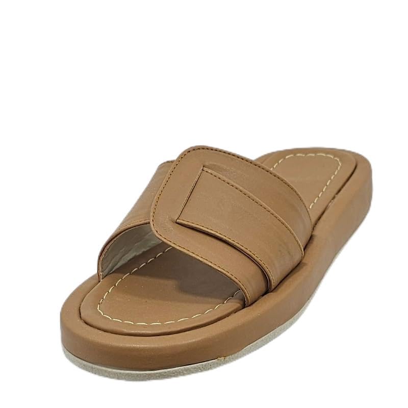 MADYOS - شبشب مسطح من الالياف الصناعية بنعل متباين مفتوح من الامام للنساء من ماديوس، كافيه، مقاس 38 EU