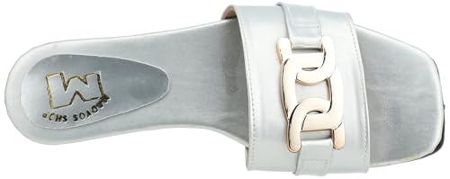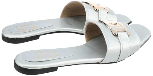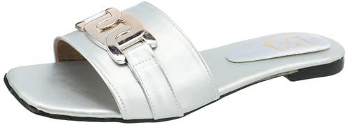 MADYOS - Flat Slippers,Contrast Sole Open-Toe Slides For Women,Synthetic fibers,silver, 38 EU