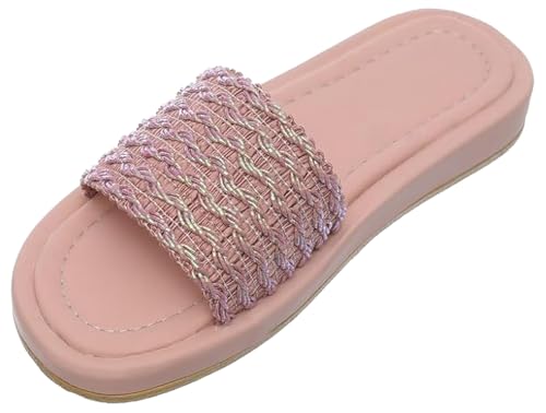 MADYOS - Slippers comfortable 2 cm wedged sole with a canvas embroidered strap rose, 41 EU