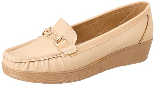 MADYOS - حذاء باليرينا للنساء من ماديوس بنعل داخلي مبطن من الاسفنج بتصميم انيق ومريح وبسيط، لون بيج، مقاس 38 EU
