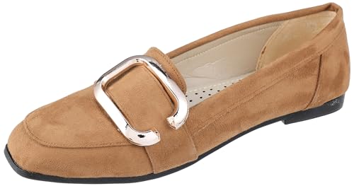 MADYOS - womens R16-21 Ballet Flat 1cm Suede closed shoe with rubber sole, HAVAN, 41 EU