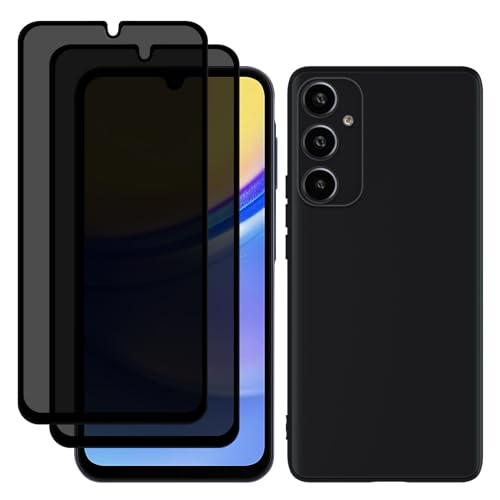 MaEiol - Anti-Spy Protection for Samsung Galaxy A15 5G - Tempered Glass and Silicone Case (2 Pcs) - Black