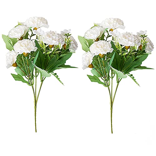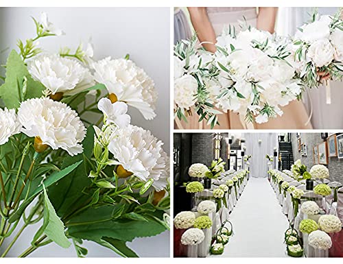 MAFELOE - MAFELOE Artificial Carnation Bouquet, Home Garden Party Wedding Decor Table Centerpieces DIY Flower Arrangement-Pack of 2- White
