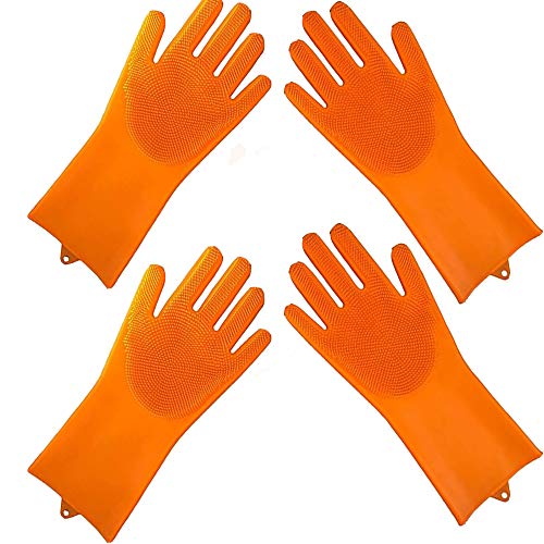 ULTIMATE BASICS - Magic Cleaning Gloves Reusable Silicone Cleaning Gloves Dishwashing Scrubber Dish Wash Scrubbing Sponge Gloves with Bristles Superb Washing Gloves Dish wash Scrub Sponge (Two Pair Orange)
