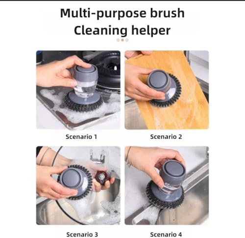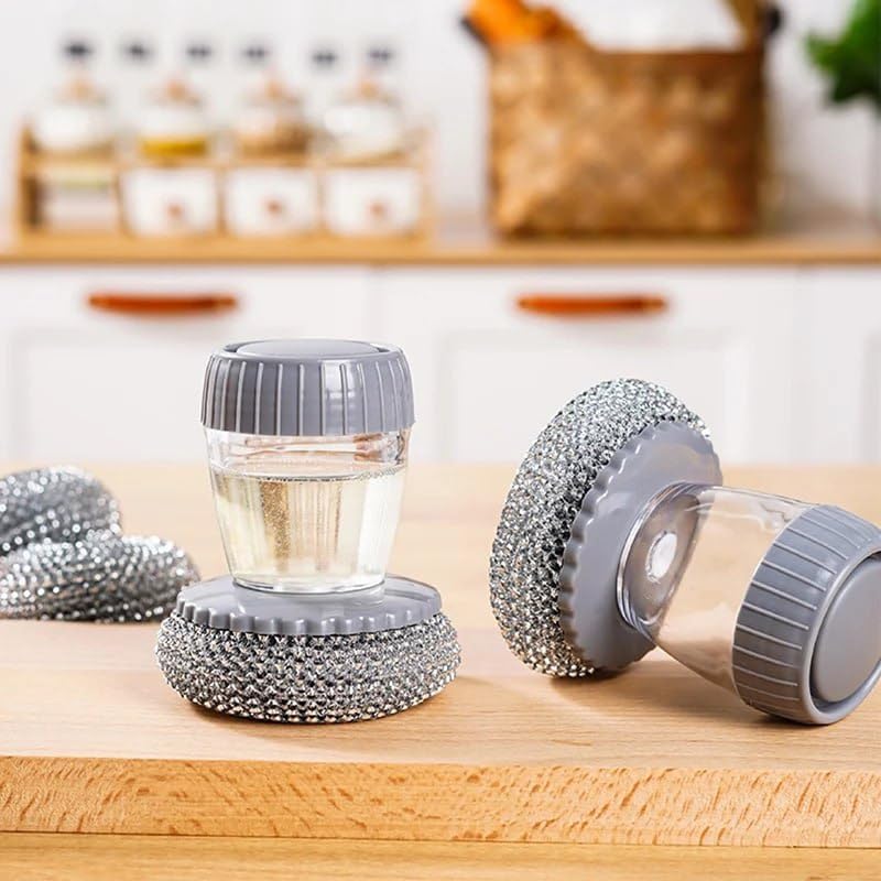 - The brush includes a soap reservoir for easy dishwashing.