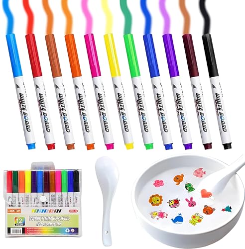 Generic - أقلام ماركر مائية سحرية عائمة قلم تلوين مائي تطفو رسوماته على الماء ألعاب للأولاد والبنات الصغار للرسم والتلوين والتعليم 12 قطعة مع حقيبة تحمل متوفر الان فى 🎁 الاسراء متعدد الألوان
