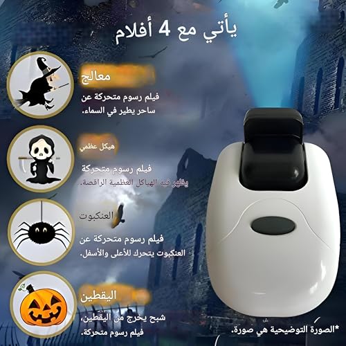 - يأتي مصباح البروجكتور هذا بطابع الهالوين للأطفال مع أربعة أفلام رسوم متحركة، مما يخلق تجربة سحرية من خلال عرض رسوم الهالوين المتحركة الساحرة على الجدران أو الأسقف، وهو مثالي للحفلات، أو تزيين المنزل، أو إضافة لمسة مخيفة لأمسياتك.