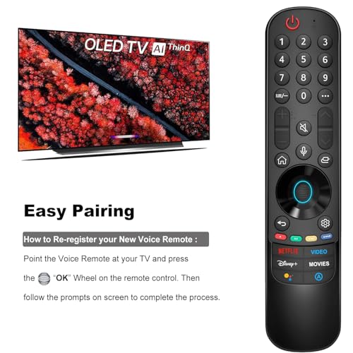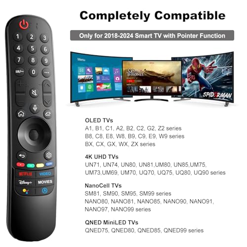 - 【التوافق】يتوافق ريموت ماجك بميزة التحكم الصوتي والمؤشر مع أجهزة تلفزيون ال جي الذكية لعام 2018 و2019 و2020 و2021 و2022 و2023 و2024. إذا كان التلفزيون الخاص بك لا يدعم ميزة التحكم الصوتي أو كان طرازًا قبل عام 2018، فقد لا تعمل ميزة التحكم الصوتي والمؤشر لريموت ماجيك.