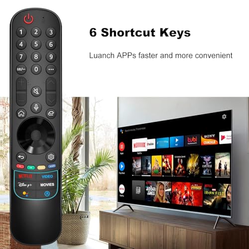 - 【الميزات الرئيسية】يدعم ريموت ماجيك مع ميزة التحكم الصوتي من ال جي تقنية voice search. تجعل تقنية التحكم الصوتي بريموت ماجيك عملية التفاعل مع التلفزيون الذكي الخاص بك أسهل! تحكم مريح يشبه الفأرة مع عجلة تحكم، احصل على المحتوى المفضل لديك بسرعة من خلال أزرار التطبيقات المثبتة مسبقًا.