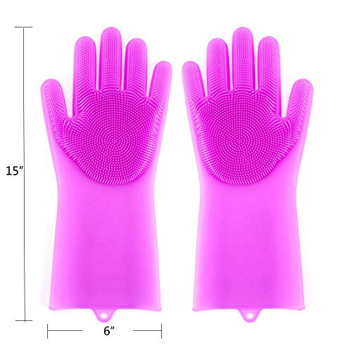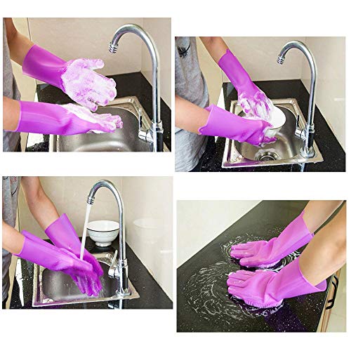 Spaceshoop - Magic Reusable Silicone Gloves with Wash Scrubber (Purple)