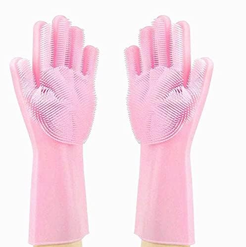 generic - Magic Silicone Cleaning Gloves Dishwashing Scrubber Reusable Dish Wash Scrubbing Sponge Gloves with Bristles,Great for Washing Dish,Kitchen,Car,Bathroom and More - Pinkco3767