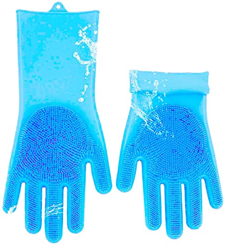 generic - قفازات سيليكون سحرية مع فرشاة غسل، قفازات تنظيف غسالة الصحون بشعيرات 170 غرام - ازرق - مع ضمان لمدة عامين للرضا والجودة