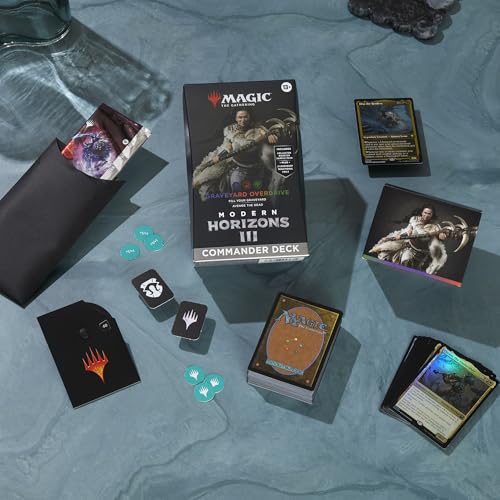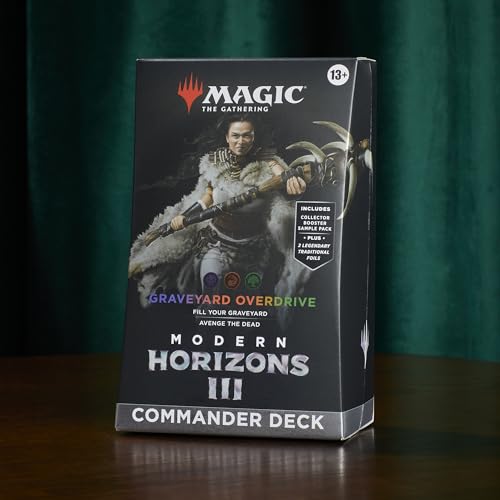- EVERYTHING YOU NEED FOR EPIC MULTIPLAYER BATTLES—Includes 1 ready-to-play Graveyard Overdrive Modern Horizons 3 Commander Deck, a 2-card Collector Booster Sample Pack, 10 double-sided tokens, 1 life tracker, and 1 deck box