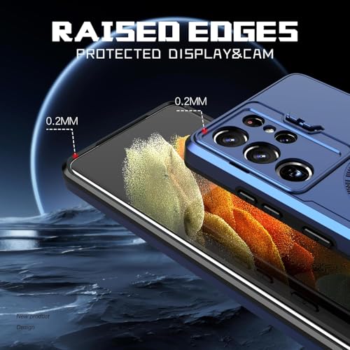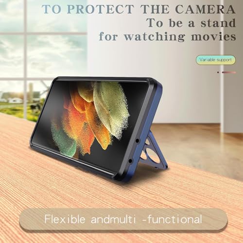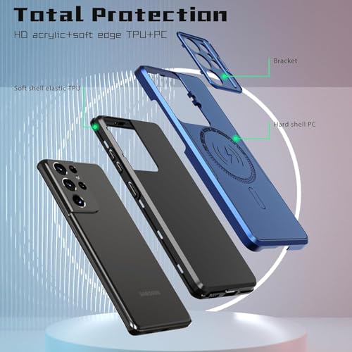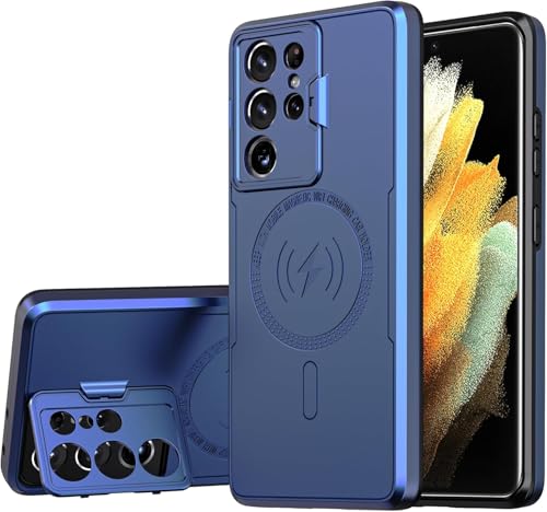 Generic - Magnetic Back Case Compatible with Samsung Galaxy S21 Ultra (s21 ultra cover) with Camera Protection Stand and Support Wireless Charging TPU Hybrid Shockproof Protective Phone Case (blue)
