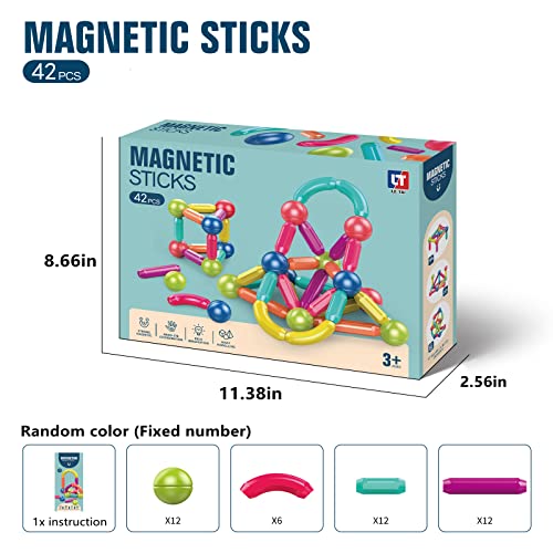 Ferthor Fun - Magnetic Balls and Rods Set,Magnetic Building Blocks Montessori Magnet Toys for Toddlers Kids,Preschool Educational Learning STEM Sensory Toys Montessori Kids Christmas Gift-42Pcs Starter Set