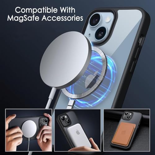 - 【حماية الشاشة والعدسة】جراب ماج سيف الخاص بنا يناسب تمامًا موبايل آيفون 15 ويحتوي على حواف حول الكاميرا بارتفاع 2.9 ملم وحافة شاشة بارتفاع 1.2 ملم تساعد على تجنب احتكاك موبايلك بالأسطح التي تترك خدوش دائمة.