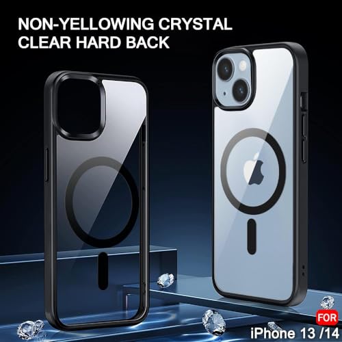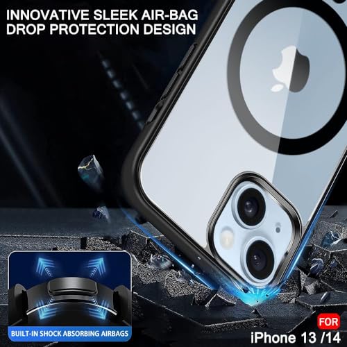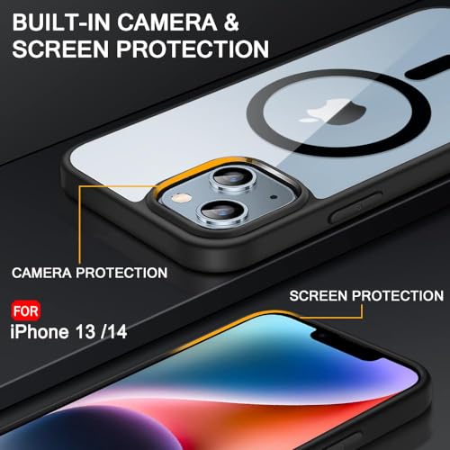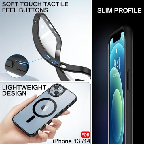 Generic - جراب حماية مغناطيسي مقاوم للسقوط بملمس مطفي مع غطاء خلفي مضاد للصدمات وتصميم رفيع لموبايل آيفون 13 / آيفون 14، لون أسود