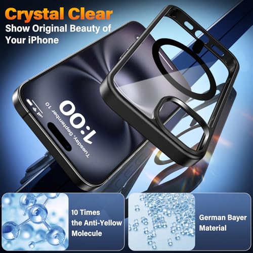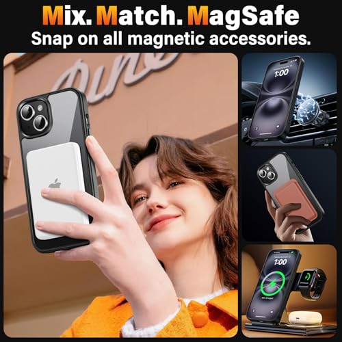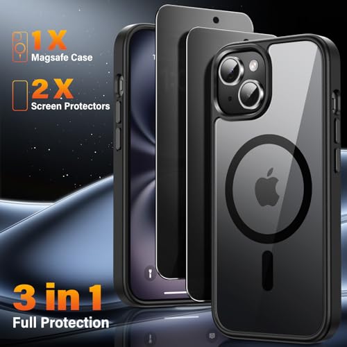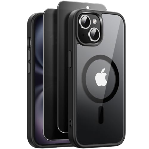 IMHAN - جراب مغناطيسي لموبايل ايفون 15 6.1 بوصة متوافق مع ماج سيف مع 2 زجاج مقوى مضاد للتجسس [حماية عسكرية] غطاء حماية شفاف مضاد للصدمات - اسود