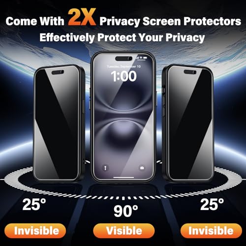 - حماية قصوى للخصوصية: مجموعة كاملة مع 2 واقي شاشة مضاد للتجسس لهاتف ايفون 15 6.1 بوصة - طبقة من الزجاج المقوى 9H، زاوية خصوصية 30 درجة، تركيب سهل خالٍ من الفقاعات - مناسب للجراب. زجاج مقوى مضاد للتجسس مع زاوية رؤية مقيدة 30 درجة لمنع أعين المتطفلين على شاشتك. مثالية للنقل العام أو الأماكن العامة أو المكتب، والحفاظ على بياناتك السرية آمنة.