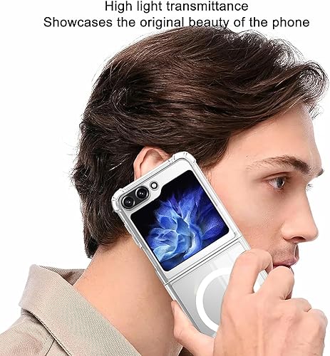 Generic - Magnetic Clear Case for Samsung Galaxy Z Flip 5 [Compatible with Magsafe Accessories] Magnetic Slim Shockproof Anti-Yellow Phone Case for Men Women