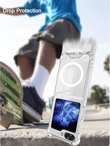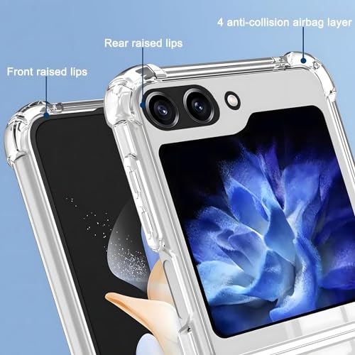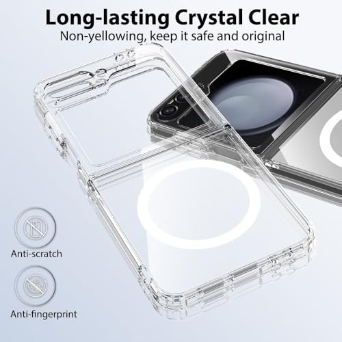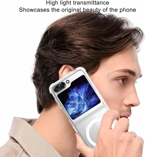 - 【100% TRANSPARENT & ANTI-YELLOW 】 Samsung Z Flip 6 Magnetic Clear Case made of high quality TPU and unique Blu-ray Technology, Slim and Durable Transparent Case Offers High Light Permeability and Yellow Appearance. The Z-Flip 6 Clear Case allows you to display the original beauty of your Phone, as well as the shock absorbing air cushion in 4 corners to reduce impacts, scratches and drops on the phone.