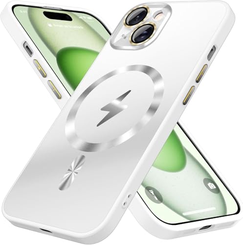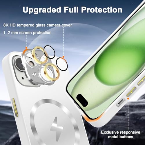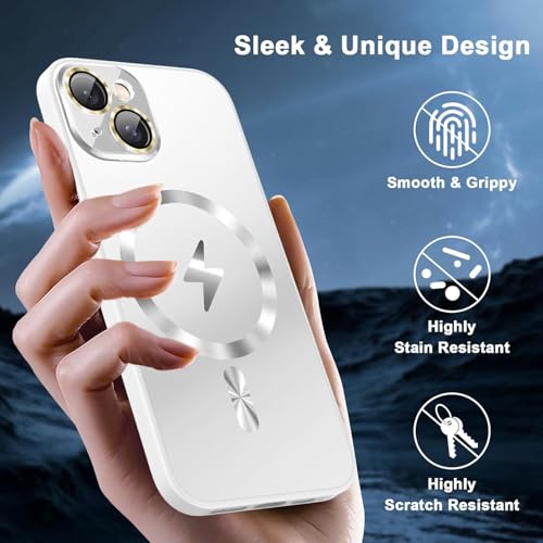 ELMO3EZZ - Magnetic Designed for iPhone 14 Case, [Full Camera Lens Protector] [Mil-Grade Drop Tested] Scratch Resistant Matte Shockproof Cover for iPhone 14 (White)