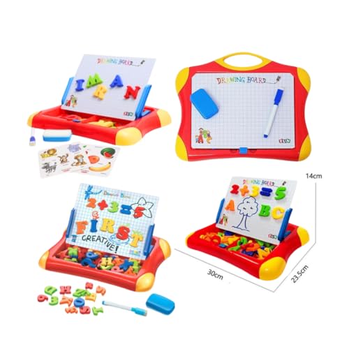 - 2 in 1 Magnetic Drawing Board: Combines magnetic drawing board with the ability of learning with magnetic colored letters and numbers to teach kids in a fun, interactive way