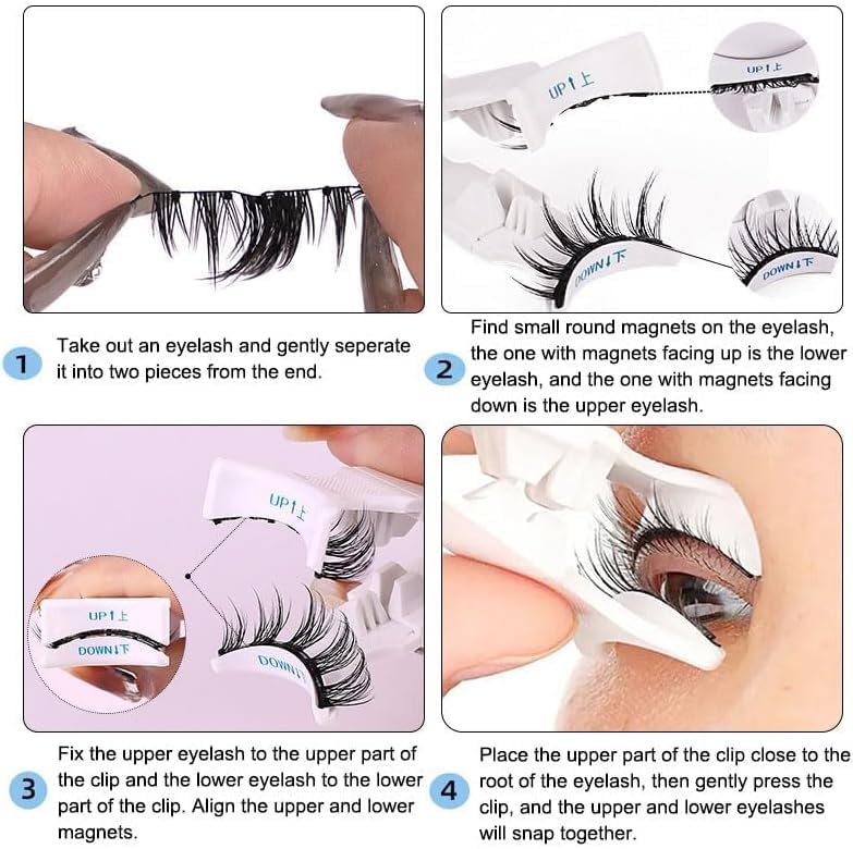 - 【رموش صناعية بمغناطيس ناعم】الرموش المغناطيسية المزدوجة الخاصة بنا لا تحتاج إلى صمغ ولا حاجة إلى محدد العيون. يمكن لصقها بإحكام على رموشك الطبيعية، لا تقلق بشأن سقوط هذه الرموش المغناطيسية. يمكنك فقط إزالة الرموش الطبيعية المنفوشة بيديك، لا حاجة إلى مزيل للرموش، مما يمنحك تجربة وضع وإزالة أسهل. تقلل هذه الرموش المغناطيسية من تهيج الغراء للعينين والرموش الطبيعية