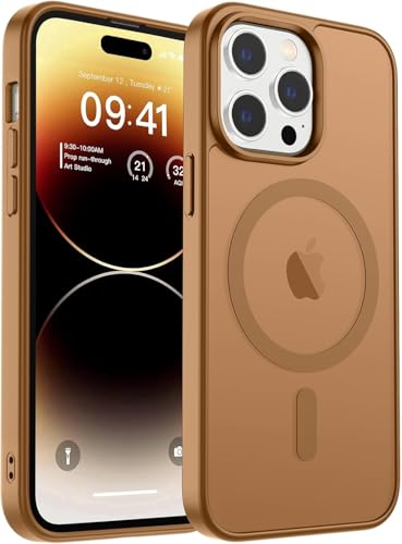 ELMO3EZZ - Magnetic for iPhone 14 Pro Max Case, [Compatible with MagSafe] [Military Grade Drop Protection] Translucent Matte Shockproof Anti-Scratch Phone Case (Brown)