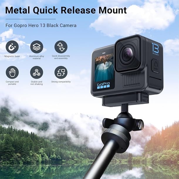 - تصميم بقفل مغناطيسي سريع التبديل: يمكنك بسهولة نقل كاميرا جو برو هيرو 13 بلاك بين إعدادات التثبيت المختلفة دون الحاجة إلى مسامير الإبهام. يضمن هذا التصميم انتقالًا سريعًا ومتوافقًا مع معظم حوامل جو برو لتوفير المزيد من الراحة.