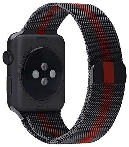 Generic - Magnetic Milanese Loop Stainless Steel Metal Band For Apple iWatch 38mm/40mm Black with Red Lining Pattern