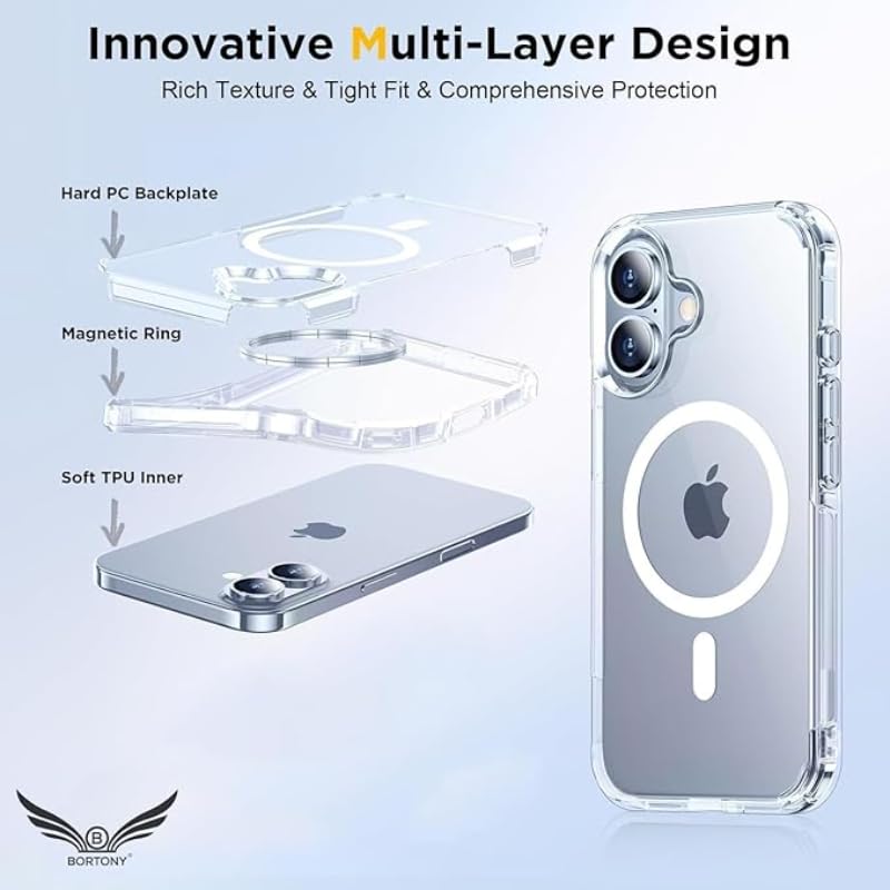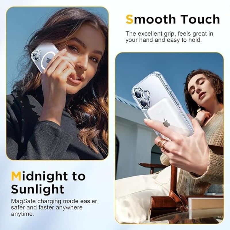 Generic - جراب موبايل مغناطيسي مرن مقاوم للصدمات بتصميم مضاد لبصمات الاصابع ومقاوم للخدش لموبايل ايفون 16 - شفاف
