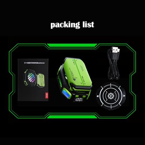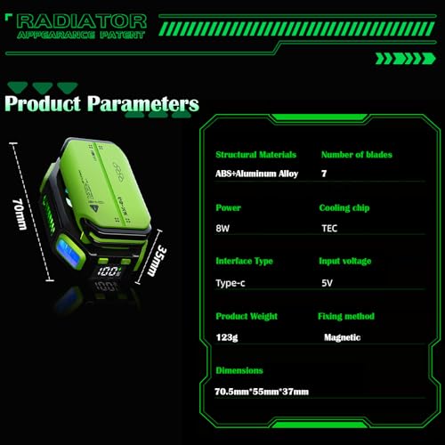 TILLMANER - مبرد موبايل مغناطيسي مع بطارية قابلة لإعادة الشحن، مروحة تبريد ليد بتبريد شبه موصل، مبرد موبايل مع عرض للطاقة، مناسب لهواة ألعاب الموبايل والبث المباشر (أخضر)