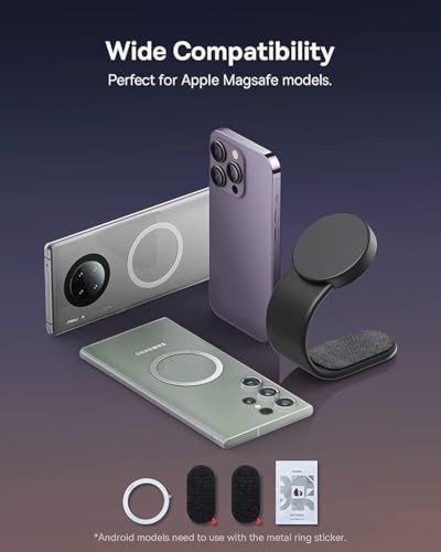 - 【Universal Fit】The MagSafe Car Phone Holder is compatible with iPhone 15 Pro Max to iPhone 12, Samsung Note 20 Ultra, S23 Ultra & other Androids. Includes a metal ring sticker for secure attachment, making it a versatile phone mount