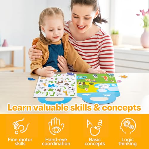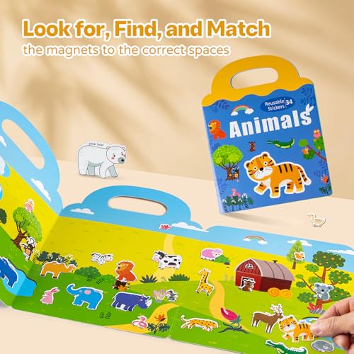 - 【MEANINGFUL GIFTS FOR TODDLERS & KIDS】: Our toddler travel activity books allows kids to play for hours and give you some quiet time, The pages of book are made well, Perfect toddler reusable magnet sticker book as gift on Birthdays, Christmas, New Year, Easter, etc.