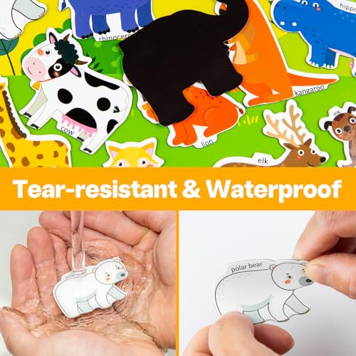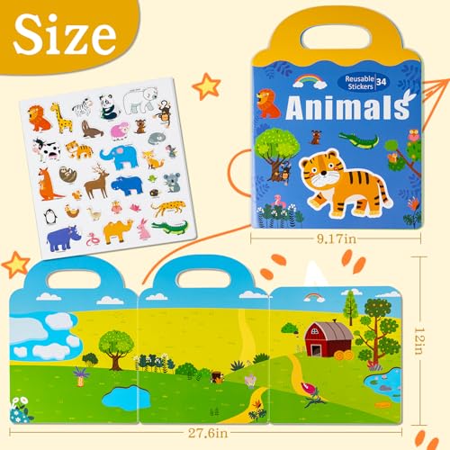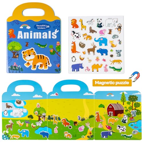 - 【LEARNING THROUGH PLAY】: Reusable stickers for toddlers not only offer funny life scene and Refrigerator Magnet pattern, Also have corresponding word for kids to learn different zoo animals. The magnetic playset includes beloved zoo animals like lions, giraffes, pandas, elephants, and tigers, along with familiar farm creatures, help kids recognize things easily and increase their understanding of the world, enjoy the fun of learning.