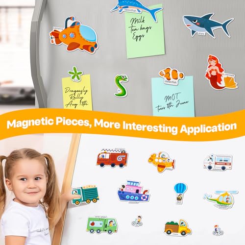 - 【PREMIUM QUALITY】: Made from durable vinyl magnets. No sharp corner and lightweight, ensure safety and easy manipulating. Printed with non-toxic ink and laminated. Specially designed for children ages 3 and up, helping develop fine motor skills, imagination, and pattern recognition. Perfect for preschool education and travelling.