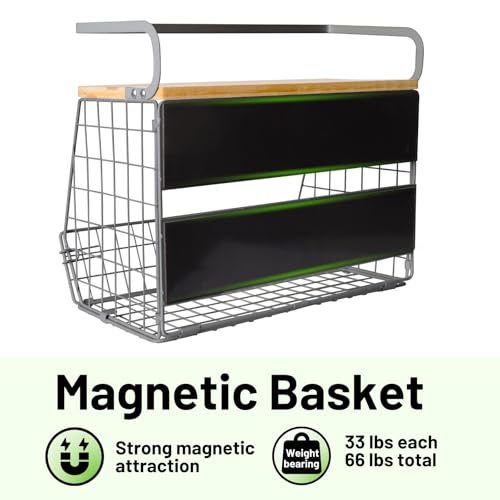 - 【MULTI-PURPOSE】The best part about this magnetic shelf is its versatility. Use it to store fruits and vegetables in the kitchen, helping keep the food fresh. Additionally, it can be used in the office break room to organize coffee pods, snacks, and sodas. Say goodbye to cluttered spaces and hello to organized living with this magnetic shelf.