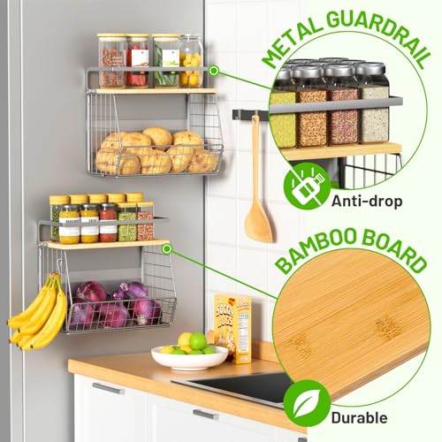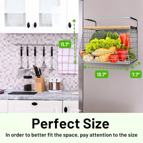 Ofiray-home - Magnetic Shelf for Fridge with Wood Lid, Fruit Potato and Onion Storage Bins, Pantry Organizers & Storage, Large Container Magnetic Spice Rack for Refrigerator, Kitchen Counter, Cabinet (2, Silver)