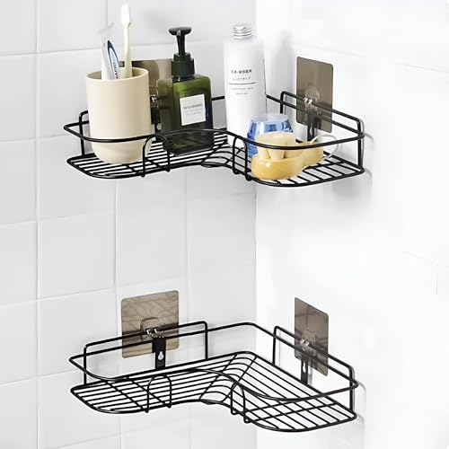 - This self-adhesive, stainless steel corner bathroom storage rack is designed to efficiently organize toiletries without the need for drilling, making installation quick and damage-free.