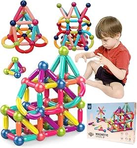 - Safe Material The magnetic building sticks set is made of high quality ABS plastic, natural permanent magnets, all parts are larger than 3.5 cm and the round edges make it safe for children to play.